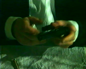 video artThree interviews with three murderers. The assignment of one of the hit-men is to liquidate a film hero and the implementation requires the meeting of electronic sign and celluloid. The multi-layeredness of the use of analog video technique offers a glimpse into the thoughts of hit-men and sheds light on the fact that the Aristotelian theory of catharsis comes with an excess of agitation. In the best of all possible circumstances a professional hit-man therefore avoids any kind of confrontation with emotions. more... -