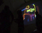exhibition / presentation (2004. 10. 22.)This is an installation which invites the audience to create their own lumasol lightgraffities (A lumasol–lightgraffiti is a photograph recorded with a long shutterspeed). The visitor can make during a timespan of thirty seconds, a drawing with spraycans that produce light (The build-in flash makes it possible to not only see the lightgraffity but also the creating artist). A soundtrack offers the visitor instructions of how the machine is operated. The result is immediately visible on the 21-inch build-in monitor. If there are no lightgraffities being made the device automatically show a collection of already made lightgraffities that are saved in the lumasol hall of fame. more... -